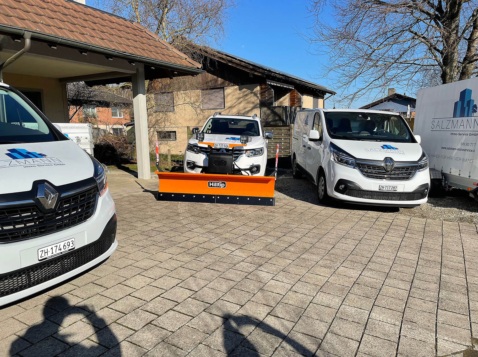 Gerne erledigen wir für Sie den kraftraubenden Winterdienst für Ihre Zu- und Anfahrt oder ganz nach Ihren Bedürfnissen: Schneeräumung mittels kraftvollem Schneeräumungs-Fahrzeug, Schneefräsen und/oder Schneeschaufeln sowie Salzen für einen sicheren Aussenbereich.